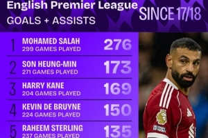 1.穆罕默德·萨拉赫,299场,276球