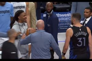 体育资讯11月24日讯 NBA常规赛,独行侠96-102不敌灰熊。赛后,莫兰特与克莱发生口角,莫兰特直呼克莱现在就是个饭桶。