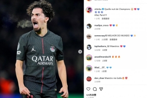 他也在赛后通过社媒晒出自己的比赛照,并配文:“ 多么精彩的欧冠之夜!🤯❤️💙⚽️⚽️⚽️巴黎加油!”