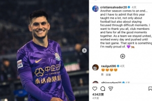萨尔瓦多写道:“又是一个赛季的结束…不得不承认这个赛季让我学到不少,不仅仅是足球,也教会了我如何在困境中保持专注。在此我想感谢俱乐部的各位和球迷们,感激我们一同度过的美好时光。”