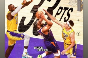此役,狄龙出战33分钟,投篮26中15,三分7中2,罚球3中1,砍下33分2篮板2助攻1抢断。