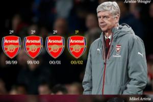 体育资讯12月08日讯 温格曾在1998-1999、1999-2000、2000-2001三个赛季三连亚后第四年夺冠,如今阿尔特塔也步入三连亚后的第四年。