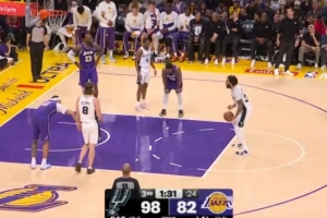 队友误伤!小史密斯盯防班凯罗踩到申京崴脚 返回更衣室