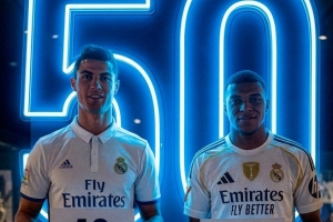 在西甲前50场比赛中,姆巴佩已打进47球,在联赛历史上仅次于打进48球的C罗。