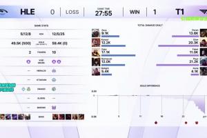 体育资讯12月14日讯 K杯决赛首局T1击败HLE,赛后数据面板Faker发条仅打出1.1万的伤害。