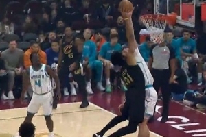 势大力沉!希姆斯篮下接球 腾空暴起双手炸扣