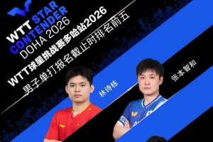WTT球星挑战赛多哈站2026将于1月13日至18日在卢赛尔体育馆举办,本站赛事冠军将获得600点世界排名积分。报名截止时排名前五名单如下:
