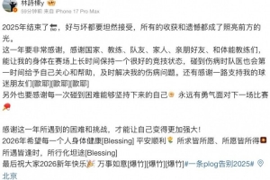 体育资讯12月31日讯 今天是2025年的最后一天。国乒球员林诗栋更新社媒,表达感谢的同时也对即将到来的2026进行展望。