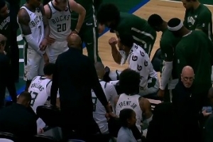 GIF-字母哥暂停期间给队友们指导战术