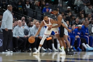 ——文班和科内特高位挡拆冲筐时会被反击渗透,尼克斯今天占便宜了。