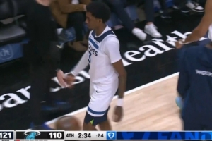 GIF-麦克丹尼尔斯被包夹后推了一下迈伦·加德纳,被吹T