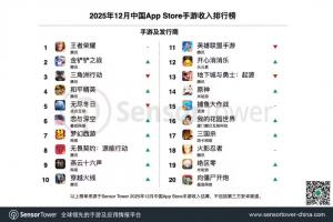 腾讯卫冕2025年12月全球手游发行商收入冠军,旗下《王者荣耀》、《金铲铲之战》、《三角洲行动》与《和平精英》包揽本期中国App Store手游收入榜TOP4。数据显示,《王者荣耀》2025年全年收入(不含中国地区第三方安卓渠道)超过20亿美元。