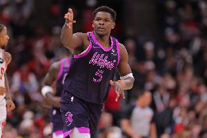 首节比赛,爱德华兹进攻端状态不错,但失误很多,他打满12分钟,5中4拿到8分3篮板1助攻1盖帽,出现5失误。