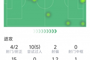 亚沙里本场数据:1次助攻,3次关键传球,2次抢断,评分7.3分