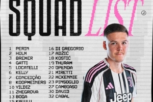 体育资讯2月8日讯 北京时间2月9日凌晨3:45,2025-26赛季意甲联赛第24轮,尤文图斯将在主场迎战拉齐奥。赛前,尤文官方公布本场比赛球队大名单,伊尔迪兹领衔锋线,博加在列。