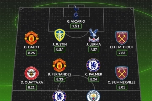 后卫:达洛特(曼联,8.26分)、贾斯汀(利兹联,8.37分)、莱尔马(水晶宫,7.39分)、迪乌夫(西汉姆联,7.83分)