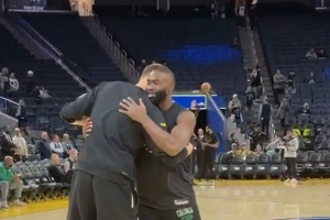 GIF-波津热身与杰伦·布朗、怀特互动