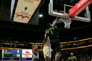 太难了!汤姆林起飞空接背扣 可惜扣飞了