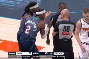 没上场也很有参与感!约翰逊钉板大帽华莱士 掘金替补席吃T