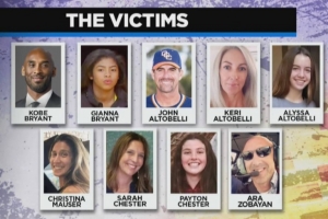 2020年1月26日的直升机事故中9位遇难者分别是:科比、吉安娜,前布鲁斯特白帽队主帅约翰-阿尔托贝利(John Altobelli)与其妻子Kerith、女儿Alyssa,私立小学女子篮球教练Christina Mauser,飞行员Ara Zobayan,吉安娜的队友佩顿-切斯特(13岁),以及佩顿-切斯特的母亲萨拉-切斯特。
