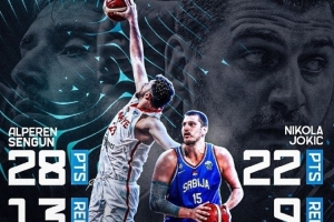 在欧锦赛乏味的小组赛征程中,今天凌晨终于又出现了一场拳拳到肉的比赛:此前都4场全胜的塞尔维亚和土耳其在小组赛收官战相遇,而约基奇和申京的直接对位更是成为了比赛的最大看点。