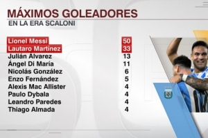 据ESPN统计,斯卡洛尼执教以来,梅西打进50球阿根廷队内最多,劳塔罗攻入33球第二多。