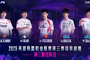 体育资讯9月6日讯 今日,LPL赛事官方公布LPL第三赛段常规赛最佳阵容,其中三阵分别是Flandre、Wei、Creme、Elk以及ON!