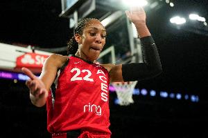 此役,王牌球星阿贾-威尔逊出战33分19秒,17投9中(三分3中3)、罚球2中2,轰下23分19篮板4助攻2抢断4盖帽的夸张数据,正负值高达+33!