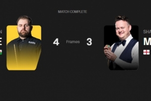 体育资讯9月19日讯 2025斯诺克英格兰公开赛16进8轮次,杰克逊-佩奇打出三杆50+(58、51、53),肖恩-墨菲打出一杆破百(102)和两杆50+(69、93),双方鏖战至决胜局,最终佩奇以4-3的比分战胜墨菲晋级八强。
