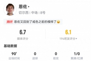体育资讯9月21日讯 本轮英超曼联2-1切尔西。此役恩佐首发打满全场,球员全场重点数据如下↓
