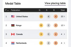 2、肯尼亚,6金2银2铜,10块奖牌
