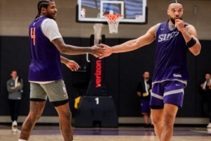 体育资讯9月28日讯 今天,太阳官方晒出了球队训练照,其中新援杰伦-格林和狄龙亮相。