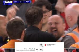 欧足联今日发布文件,认为西蒙尼的行为违反体育道德,处以欧冠停赛1场的处罚,因此西蒙尼将无法在欧冠主场对阵法兰克福的比赛中现场指挥。