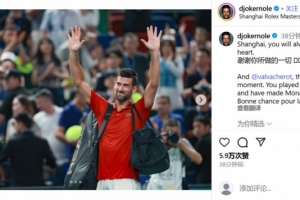 德约科维奇写道:“上海,你将永远在我的心中。(用中文)感谢你所做的一切。”