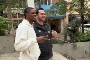 视频当中,亨德森、夏普和里斯三名球员与球迷合影互动,并送出各自的球衣。