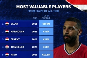 埃及球员德转历史最高身价排名:
