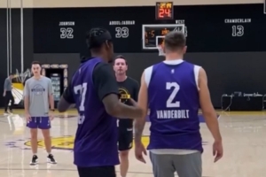 体育资讯10月14日讯 湖人官方社媒更新,分享队内训练最新动态。